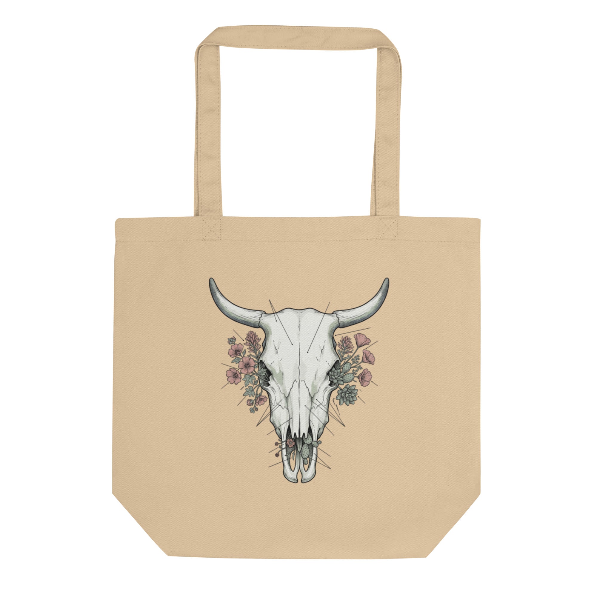 What size should I order for the Desert Floral Bull Skull Organic Cotton Tote Bag Sustainable Western Style?