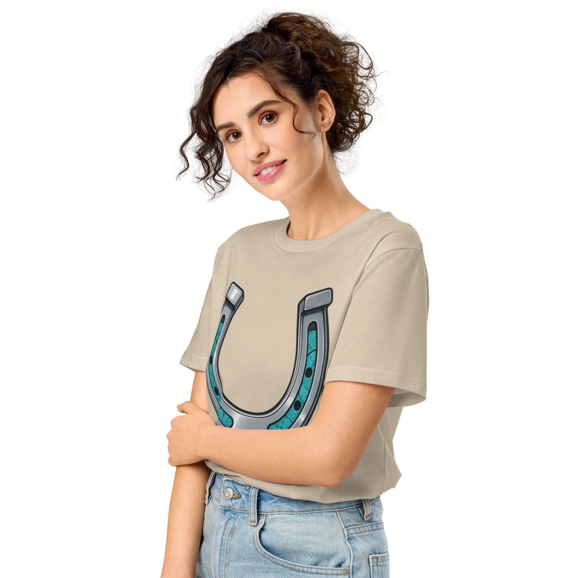 What size should I order for the Turquoise Horseshoe Organic Cotton Tee – Cowboy Renaissance?